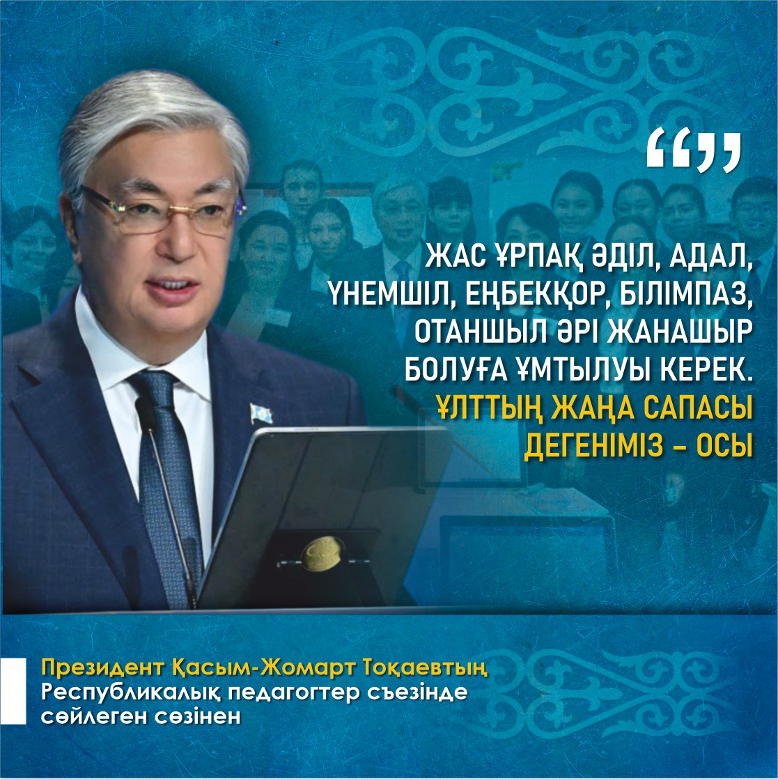 07 октябрь 2023 0 1 2 3 4 5 Президент Қасым Жомарт Тоқаевтың Республикалық педагогтер съезінде сөйлеген сөзінен