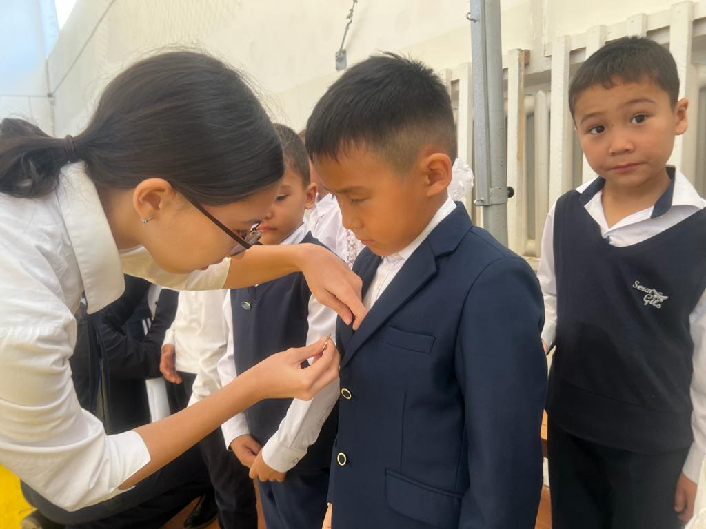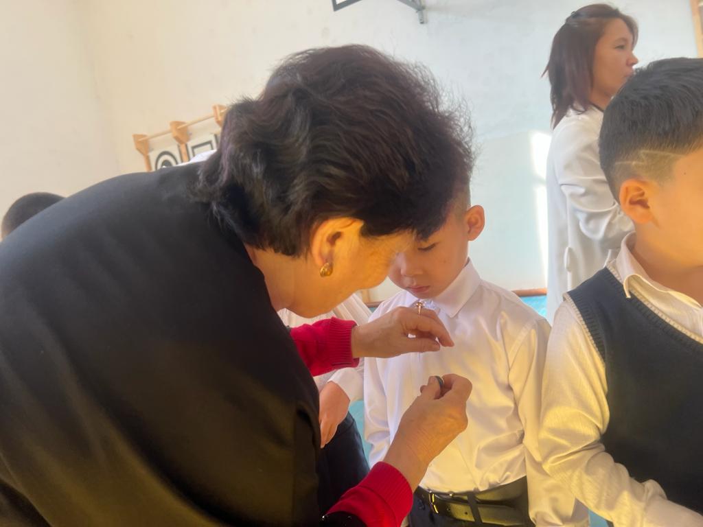 Директордың тәрбие ісі жөніндегі орынбасары И.Сагимбаев бүлдіршіндерге ақ жол, болашақтарына сәттілік тілеп, ардагер ұстаз З.Дюсупжанова ақ батасын берді.