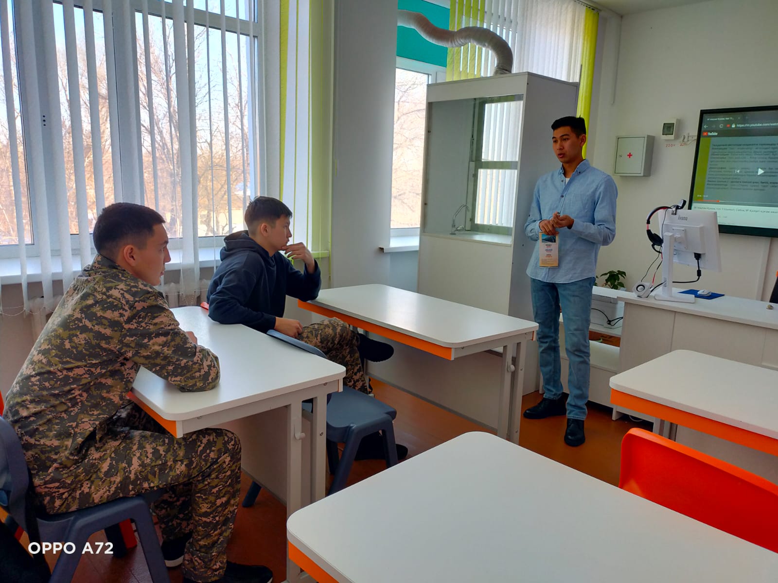 07.02. 2024 жыл күні мектебімізге Сағадат Нұрмағамбетов атындағы Құрлық әскерлері Әскери инстититутының ІІІ-курс курсанты Е.Е. Айдаболов келіп, 11-сынып түлектерімен әлеуметтік қажеттіліктерін қанағаттандыратын мамандықты ерекше, саналы және өз бетінше таңдауға бағыттау барысында кәсіптік бағдар беру бойынша түсіндірме жұмысын жүргізді.
