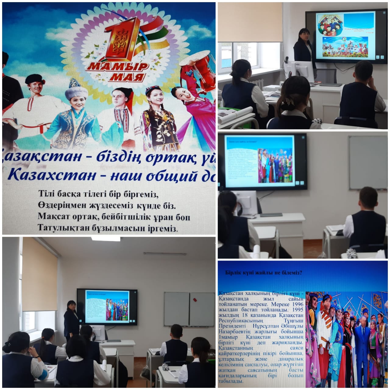 1 мамыр-Халықтар бірлігі күні, сынып сағаттары мен спорттық эстафета ұйымдастырылды.