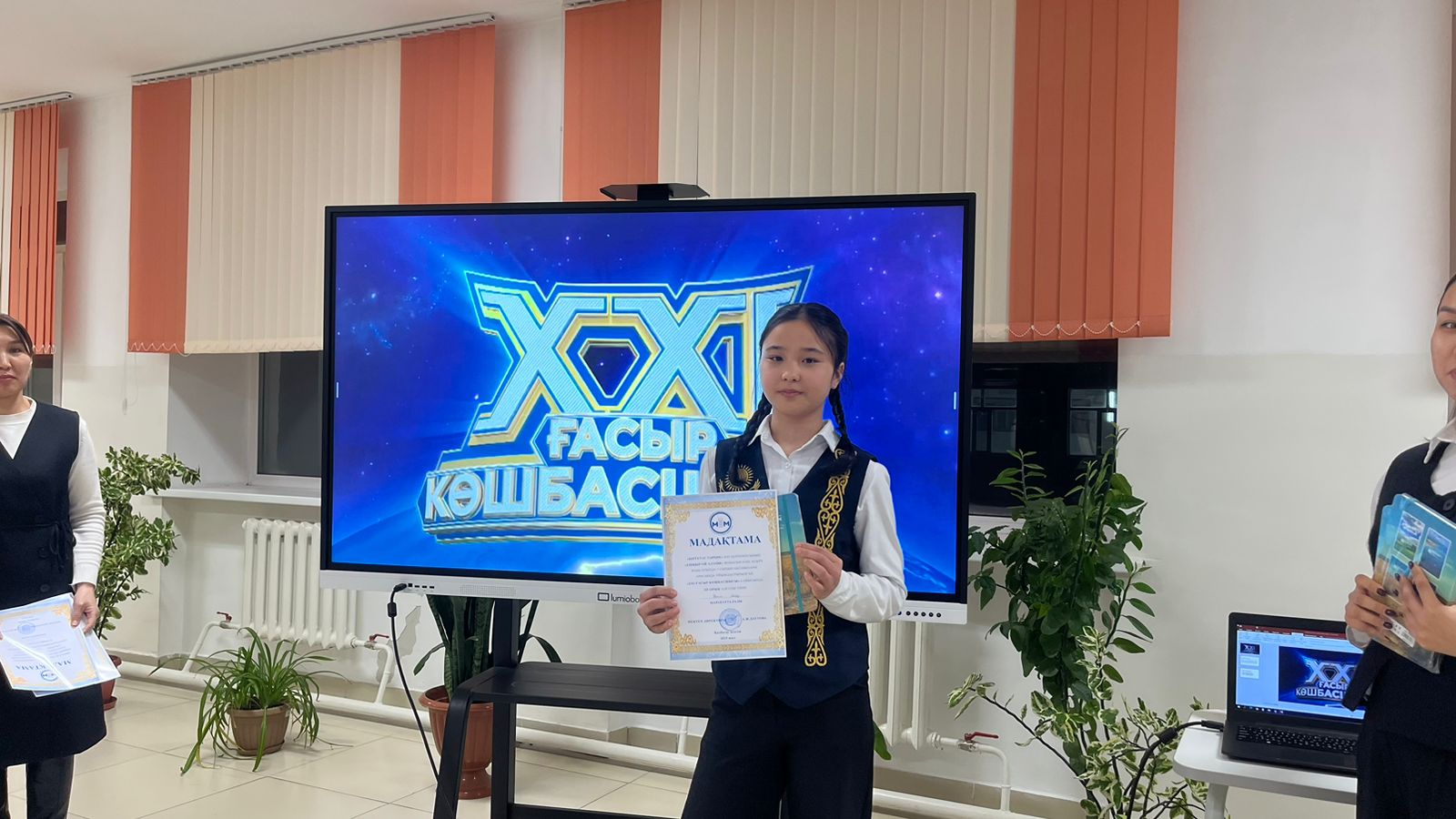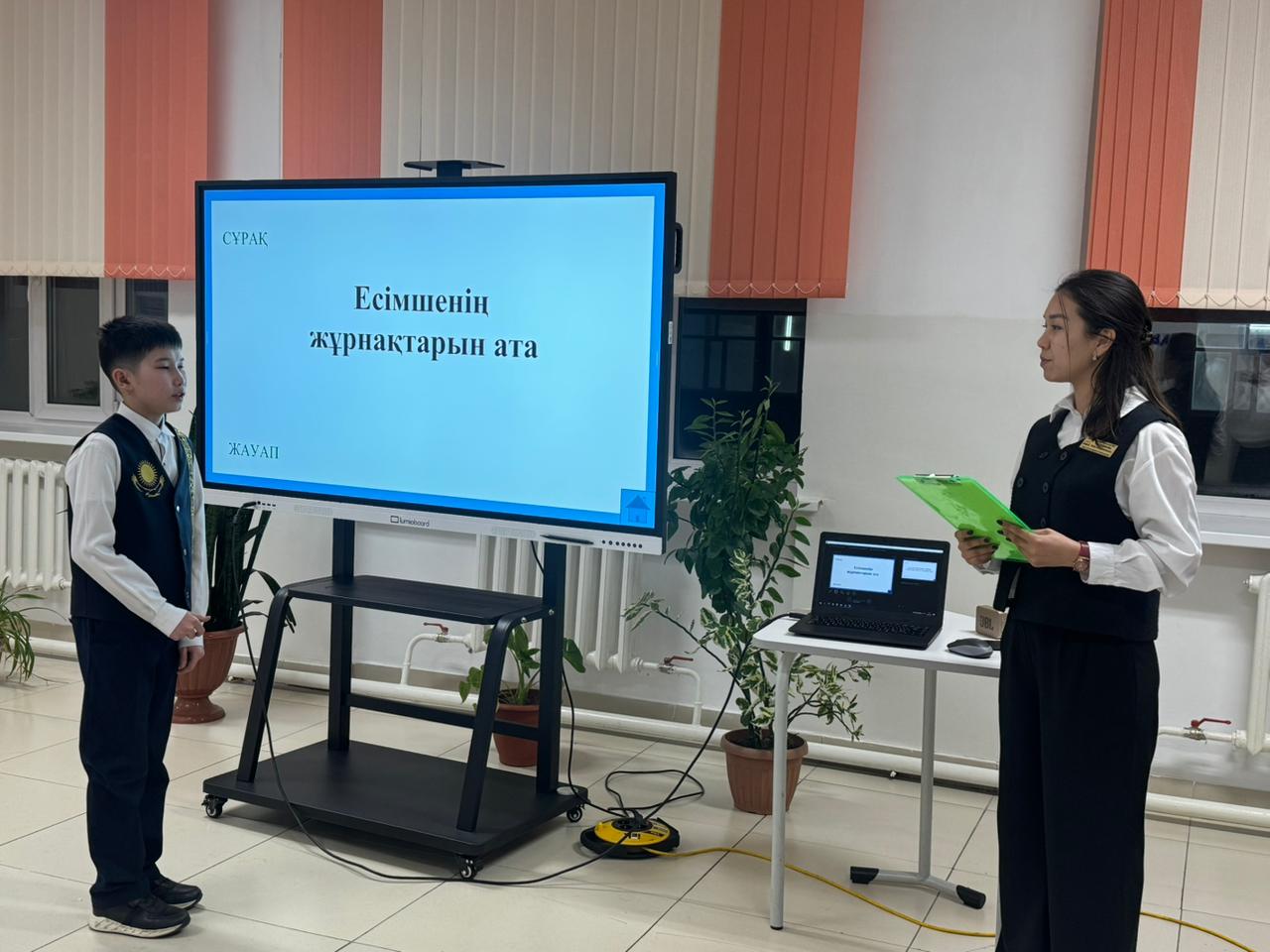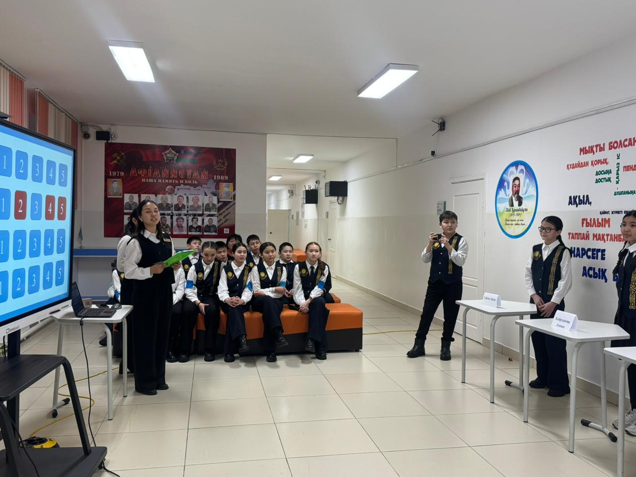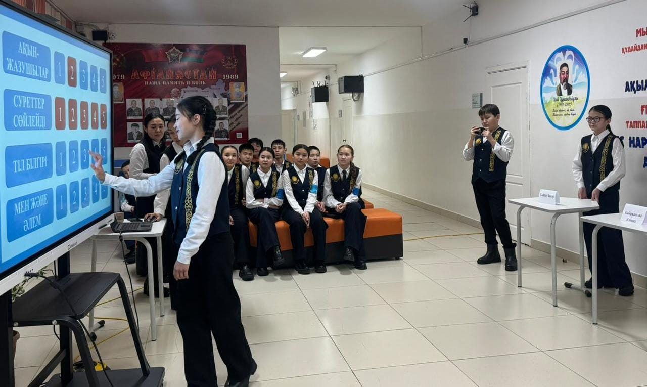 қазақ тілі мен әдебиеті пәні мұғалімдері СЕРИКҚАЗЫ ДИЛЯРА НҰРЛЫБЕКҚЫЗЫ мен АБДУЛДИНОВА АИДА АЙДАРХАНҚЫЗЫ 7-сынып оқушыларымен “ХХІ ҒАСЫР КӨШБАСШЫСЫ” интеллектуалды ойынын өткізді.