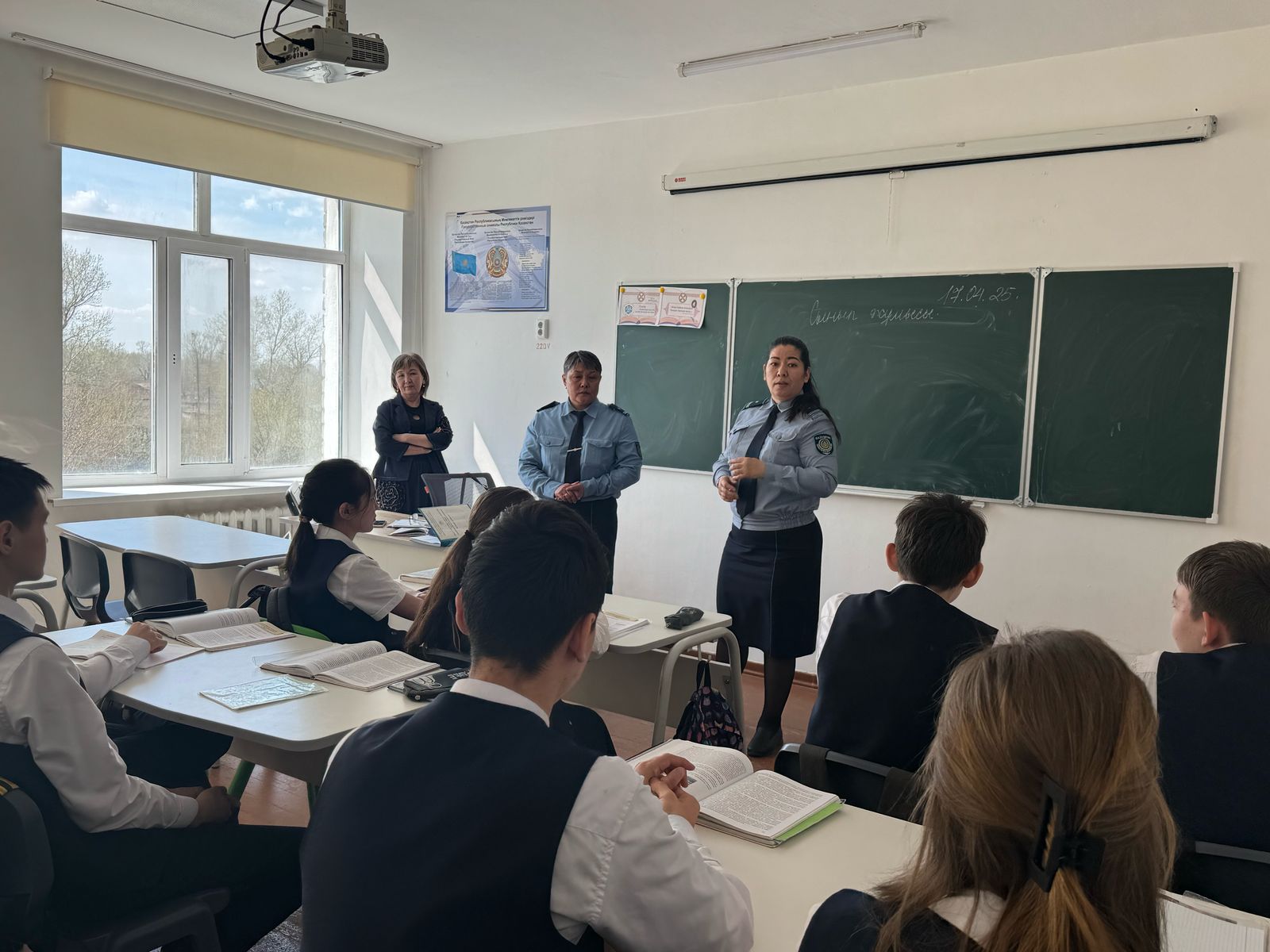 ✅Мектебімізде 17 сәуір күні Жарма АПБ ЖПҚБ КТІБ УПИ аға инспекторы, полиция майоры АКИМБАЕВА АЙЖАН МУХАМЕТКАНОВНА және полиция майоры КУНАНБАЕВА АКМАРАЛ ЕРМЕКОВНА жасөспірімдер арасындағы құқықбұзушылықтың алдын алу бойынша 9-сынып оқушыларымен құқықтық кездесу өткізді.