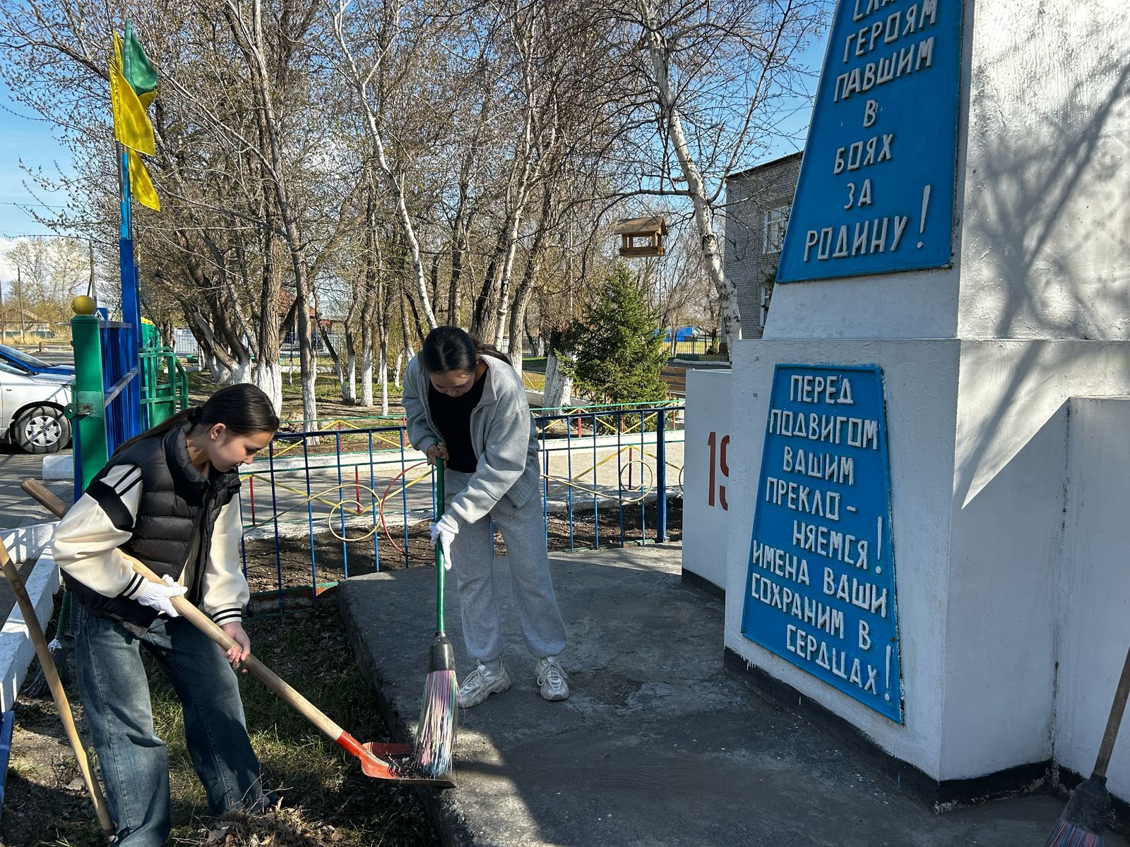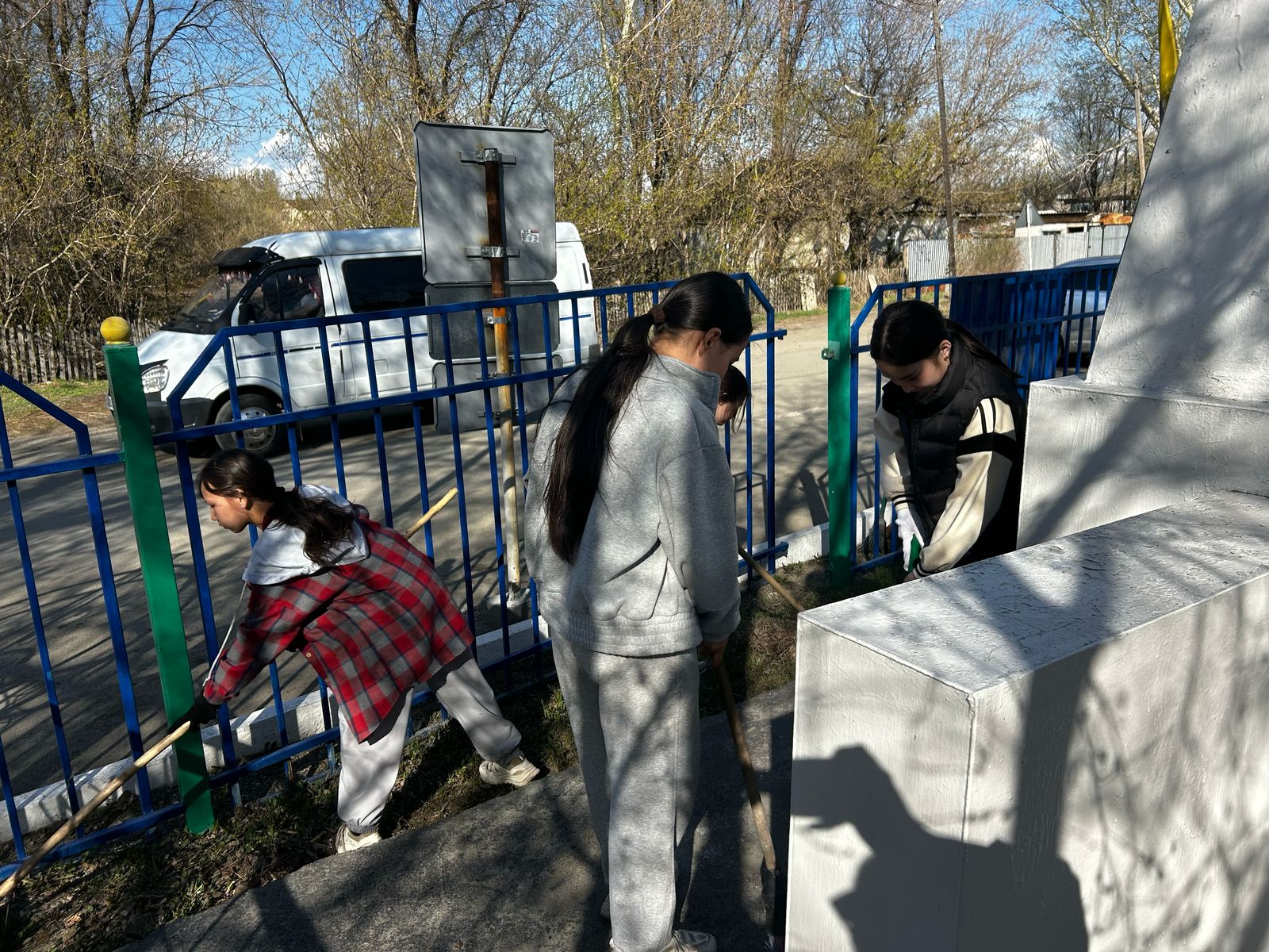 🌱Члены «ЗЕЛЁНОГО КЛУБА» провели субботник внутри территории памятника на школьном дворе, с целью организации акции «ЧИСТЫЙ КРАЙ».