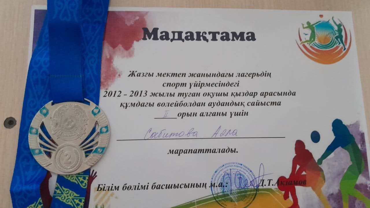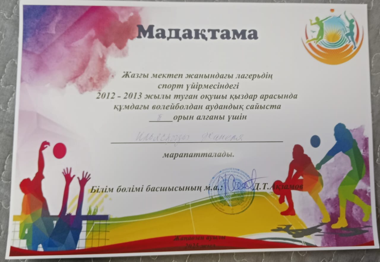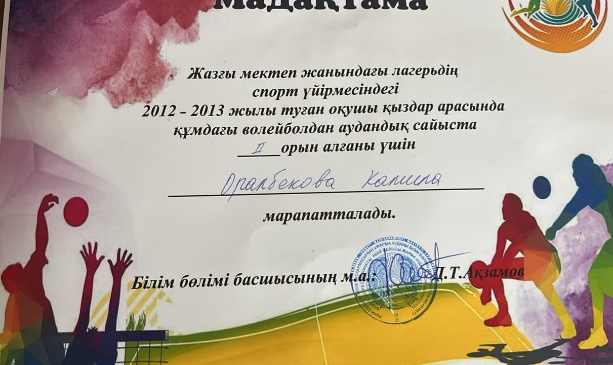 ✅2025 жылдың 11 маусым күні 2012-2013 жылы тұған қыздар арасында жағажайдағы волейболдан аудандық турнирінде Маяковский атындағы орта мектебінің қыздар командасы ІІ-ОРЫНҒА ие болды.