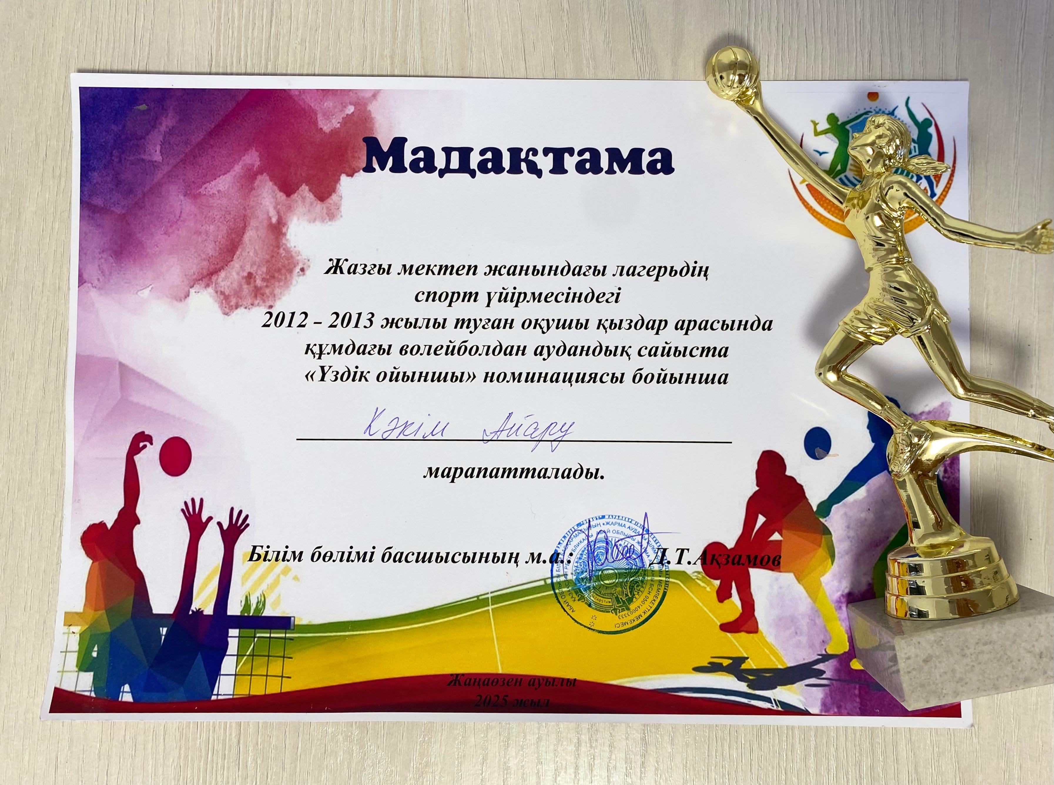 ✅Аталған жарыста «ҮЗДІК ОЙЫНШЫ» номинациясына КӘКІМ АЙАРУ ие болды.
