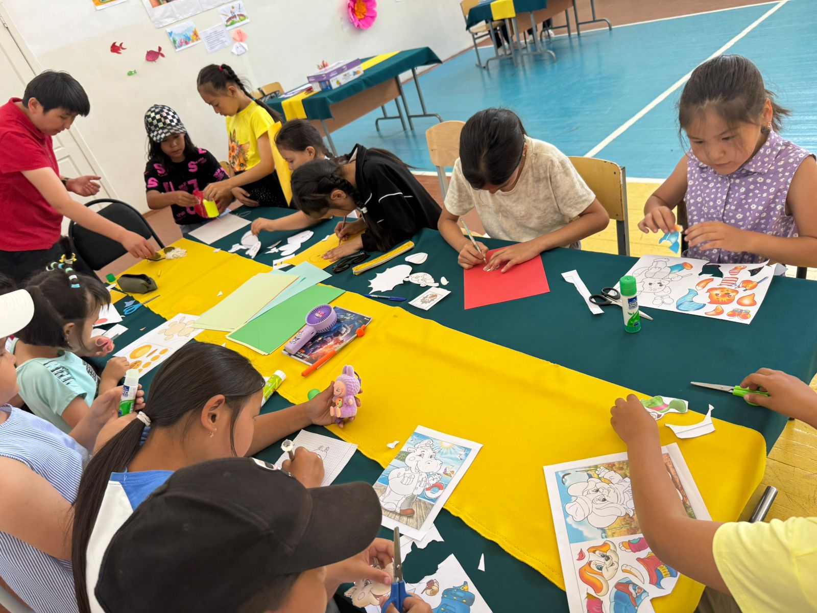 ☀️В пришкольном летнем лагере «ДОСТЫҚ» с целью развития творческих способностей и интереса детей воспитатели организовали творческое занятие по изготовлению аппликаций из цветной бумаги.