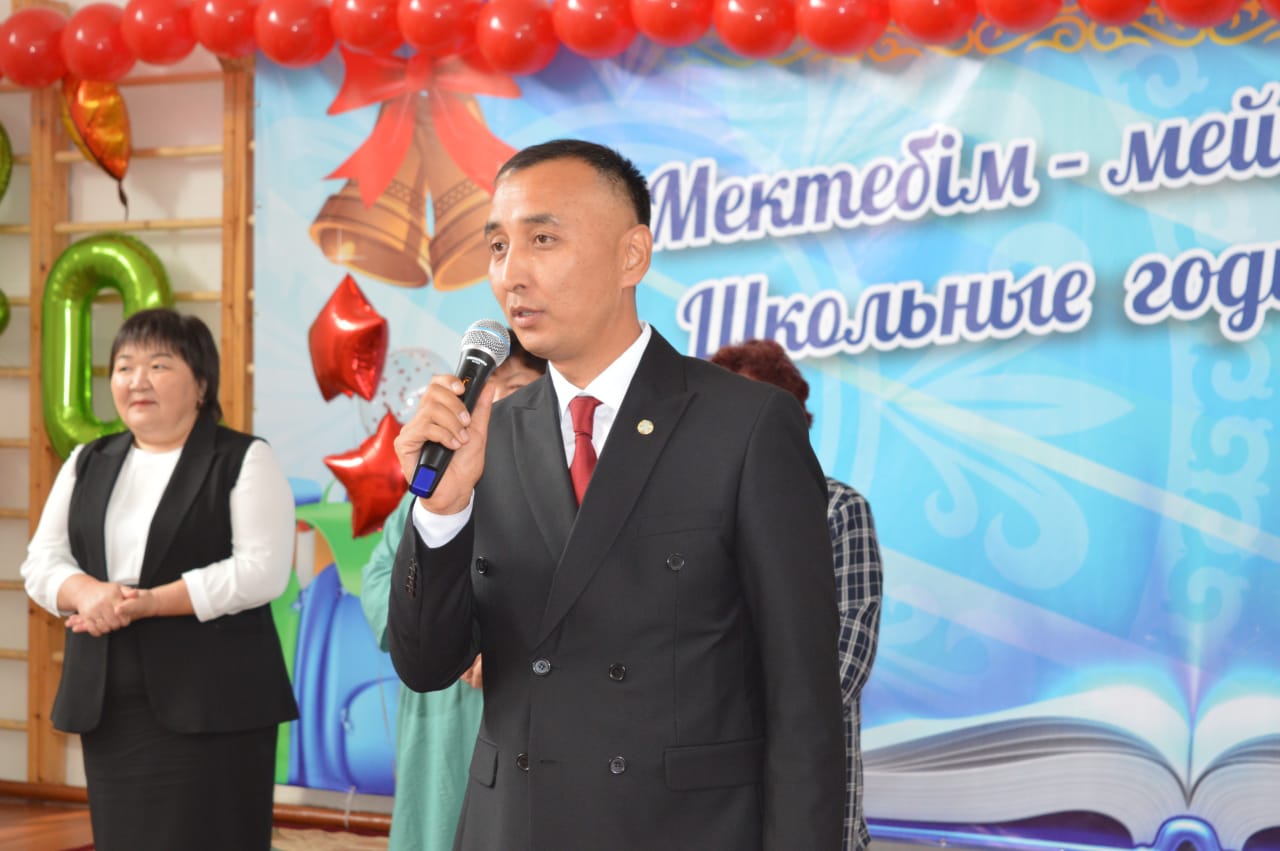 📚Салтанатты жиынға Жарма ауданының білім бөлімінің басшысы Ақзамов Данияр Токанович, ардагер ұстаз Пяткова Татьяна Николаевна, мектепішілік әжелер кеңесінің белсенді мүшесі Сахарина Жамал Нуртугановна арнайы қатысып, сөз сөйлеп, ұстаздар қауымын, ата-аналар мен оқушыларды жаңа оқу жылының басталуымен құттықтады.