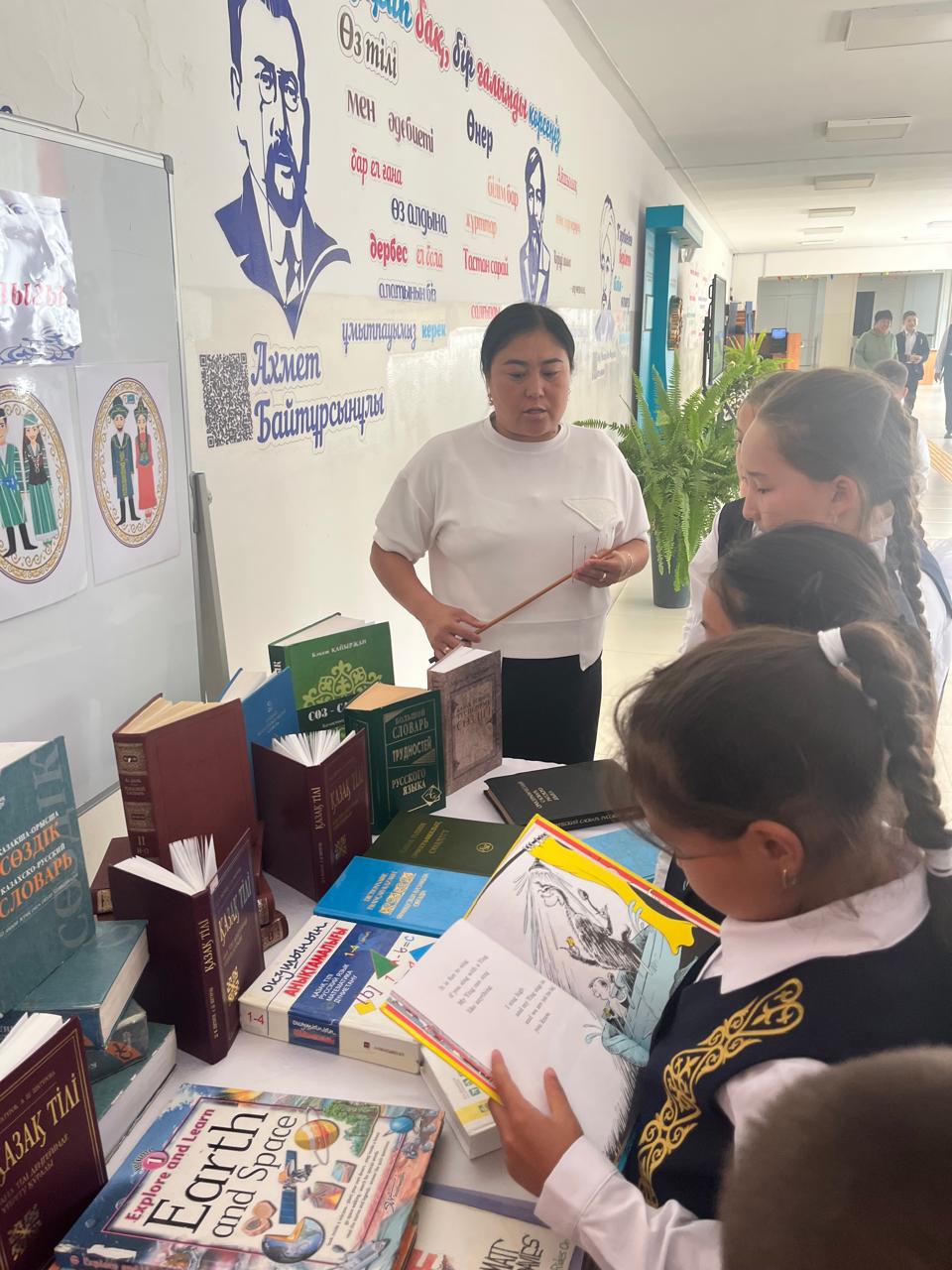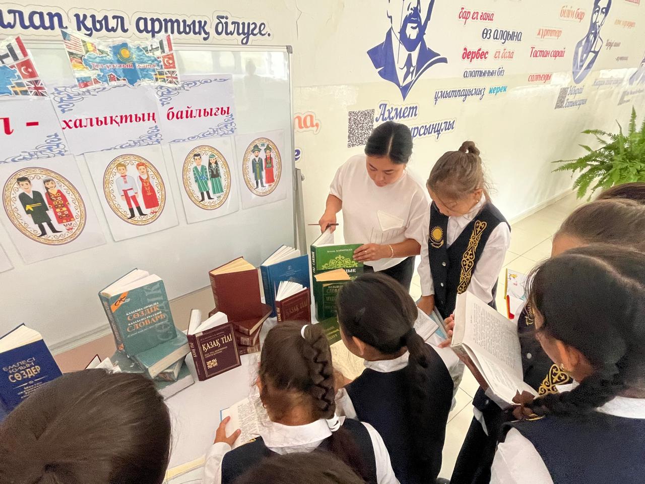 ✅4 қыркүйек күні мектебімізде қазақ, ағылшын және орыс тілі мұғалімдерінің ұйымдастыруымен Қазақстан халқы тілдері күніне арналған "Тіл – халықтың байлығы" атты кітап көрмесі өтті.