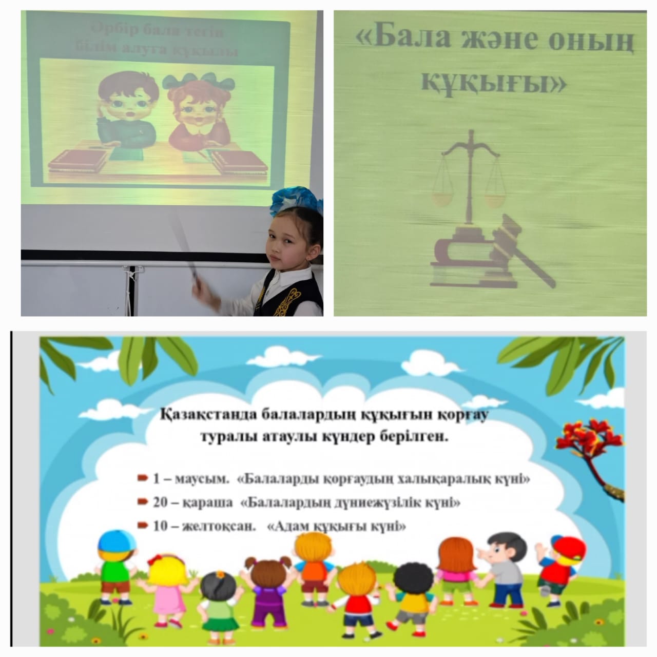 ✅“Дүниежүзілік балаларды қорғау күні” аясында 3 "А" сынып жетекшісі МУСУЛМАНКУЛОВА БАЯН КАБЛАШИМОВНА "Бала және оның құқығы" тақырыбында сынып сағатын өткізді.