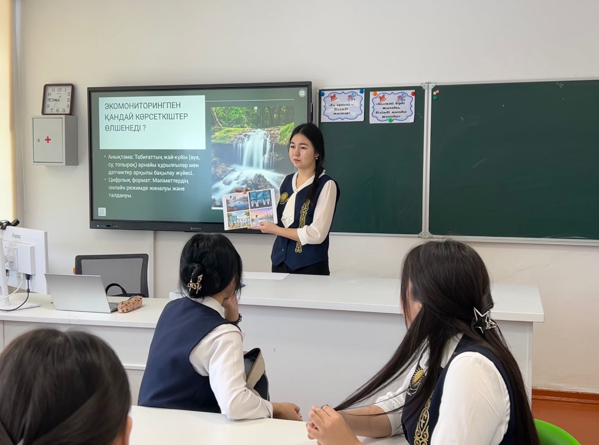 ➡️ Іс-шара барысында оқушылар қоршаған ортаны қорғауда цифрлық технологиялардың маңызы, экологиялық деректерді жинау мен талдау жолдары, заманауи экомониторинг құралдарының тиімділігі туралы пікір алмасты.