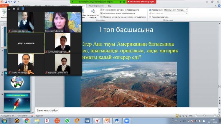 Ойын барысында оқушылар өткен сыныптардан алған білімдерін жоғары деңгейде көрсете білді, қызықты географиялық жұмбақтардың шешуін таба білді және соңында «Капитандар сайысы» атты кезеңде әр топ басшылары бақ сынасты. Әділ қазы алқасының шешімімен екі топтың ұпайы тең болып шықты. Ойын соңында қатысқан қонақтар оқушыларға жылы лебіздерін жолдады.