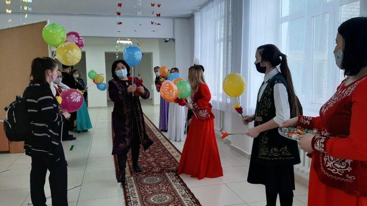 Тағылымы мол наурыз мерекесі – жаңару мен жаңғырудың, адам мен табиғат арасындағы үндестіктің, келісім мен татулықтың алтын арқауы деп халқымыз қашанда жыл басын ізгі ниетпен, үкілі үмітпен, ақ жарма тілекпен қарсы алады. Бұл күні ата салтына сәйкес, жарасымды ұлттық киімдерін киген ағылшын пәні бірлестігі ұстаздары ақ пейілдері, тілектерімен барша ұжымды мерекемен құттықтап, ізгі тілектерін айтып, шашуларымен мерекенің бастамасын жасады. Балаларға тәттілер таратылып, әсем ән мен видеороликтер мерекенің ажарын аша түсті.