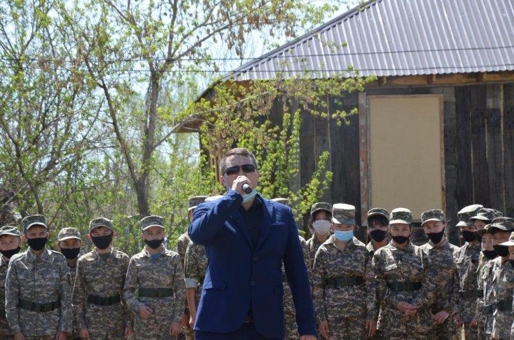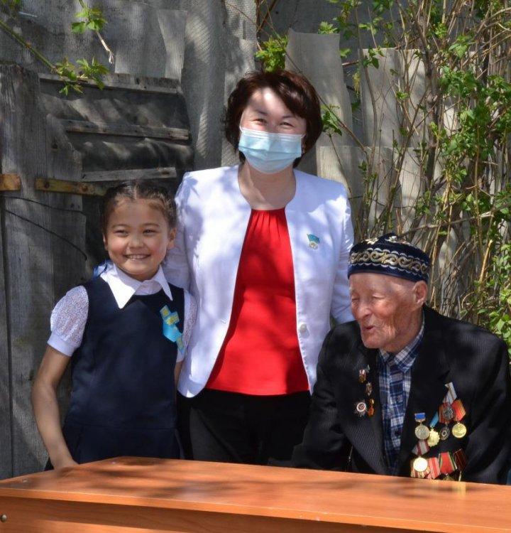Ұлы жеңістің 76 жыл толуына және Отан қорғаушылар күні қарсаңында «Маяковский атындағы орта мектебі» КММ-нің «Жас Сарбаздар» сыныптары ауданымыздағы Ұлы Отан соғысы ардагері Н.Г. Загидуллин атаны мерекесімен құттықтап барды. Қарт майдангердің бір күнін мерекеге айналдыру - сарбаздар үшін үлкен мәртебе болды десек қателеспеген болар едік. Ардагер алдында сап түзеген сарбаздардың ортасында мектеп директоры Н.М.Садыкова өзінің жылы лебізін білдіріп, майдангерді мерекесімен құттықтады. Өз кезегінде сарбаздар және 3 сынып оқушысы Т.Таширяева «Катюша» әндерін мерекеге тарту етті. Музыка пәні мұғалімі Н.Абильмажинов «День Победы» әнімен кішігірім шеруді аяқтады. Соғысты өз көзімен көріп, куәсі болған атамыздың бұл күні айтар сөзі көп болса да, өзін Жеңіс күні нағыз Батырша ұстап, толқыған көңілімен сарбаздардарға : «Бейбіт өмірдің балалары, тәуелсіз елдің болашағы- сендердің тату да, бірлікте болғандарыңды қалаймын, ел өркендеуіне өз үлестеріңді қосудан аянбаңдар»,- деп тілек айтып, алғысын білдірді.