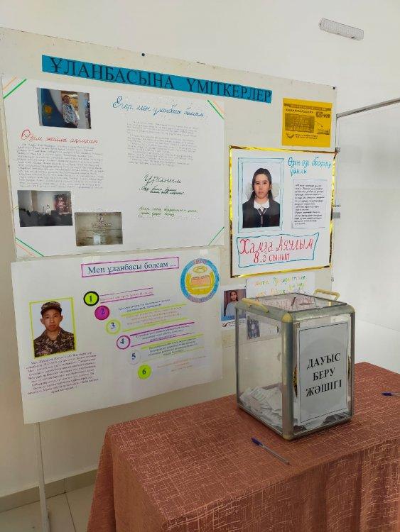 "Ұланбасы" сайлауы офлайн форматта мектеп қабырғасында, жасырын дауыс беру арқылы өткізілді. Мектепшілік «Ұланбасы-2021» сайлауын ұйымдастыру мен өткізу мақсатында сайлау комиссиясы құрылып, «Жас Ұлан» бірыңғай балалар мен жасөспірімдер ұйымының Ұланбасы үміткерлігіне алдын – ала байқау жарияланды. Байқау талаптары бойынша 4 үміткер тіркеліп, үміткерлер өздерінің жеке бағдарламалық портфолиолары мен ұтымды ұсыныстарын сайлаушылар назарына ұсынған болатын. Дауыс берушілер (ұстаздар, оқушылар) үміткерлердің жеке бағдарламалары және ақпараттық үгіт-насихат материалдарымен таныс болып, өз таңдауларын жасады. Дауыс беру нәтижесі 24.09.2021 жыл күні, сағ. 17.00-де жарияланып, 8 «Б» сыныбының оқушысы Қаирбек Айша Ризабекқызы «Мектеп парламенті» білім алушылардың өзін-өзі басқаруы бойынша «Ұланбасы» болып сайланды.