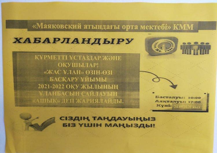 «Маяковский атындағы орта мектебі» КММ-де 24.09.2021 жыл күні «Мектеп парламенті» білім алушылардың өзін-өзі басқаруы бойынша «Ұланбасы» сайлауы болып өтті.