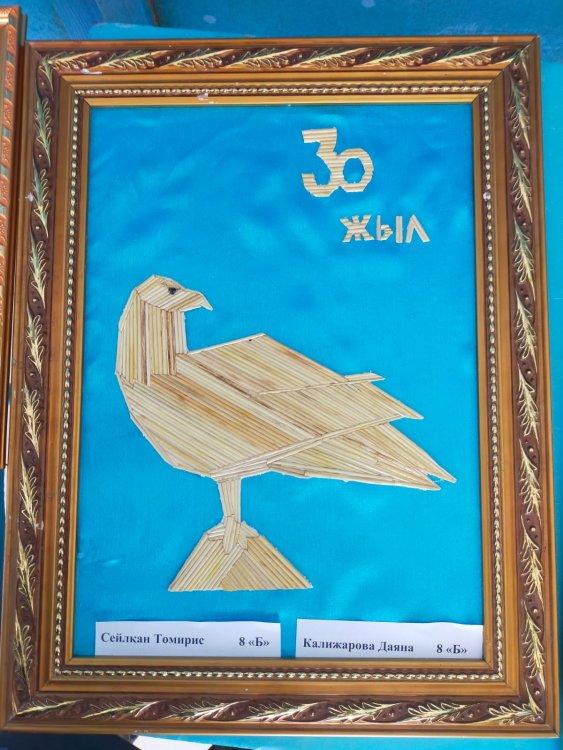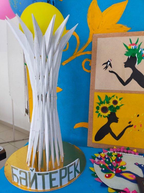 «Өнерім саған, Тәуелсіз Қазақстаным!» атты еңбек пәні мұғалімдері Б.Нурланов пен Ж.Рамиевалардың ұйымдастыруымен 5-11 сынып оқушыларының туындыларынан қолөнер көрмесі ұйымдастырылды. Түрлі бағытта орындалған қолөнер бұйымдарының арасынан Хан Шатыр мен Бәйтеректің макеттерін, қима материалдардан жасалған бұйымдар, бояумен салынған, кестемен салынған суреттерді де көруге болады.