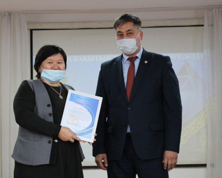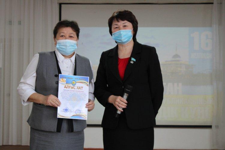 Мектеп директоры Н.М.Садыкова және кәсіподақ комитеті төрайымы Қ.Қ.Наушабаева мектеп дамуы мен көркеюіне елеулі үлес қосқан ұстаздар қауымы мен кіші қызметкерлерге алғыс хаттар табыстап, еңбектеріне табыс тіледі.