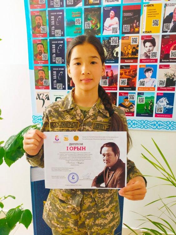 С 5 по 22 апреля на образовательном портале прошел республиканский конкурс "Макатаев оқулары", в котором приняла участие ученица 7 класса Бекбосын Аружан и заняла І-место (руководитель: Кошербаева Ж. Ж.). Поздравляем Аружан и ее руководителя с победой!