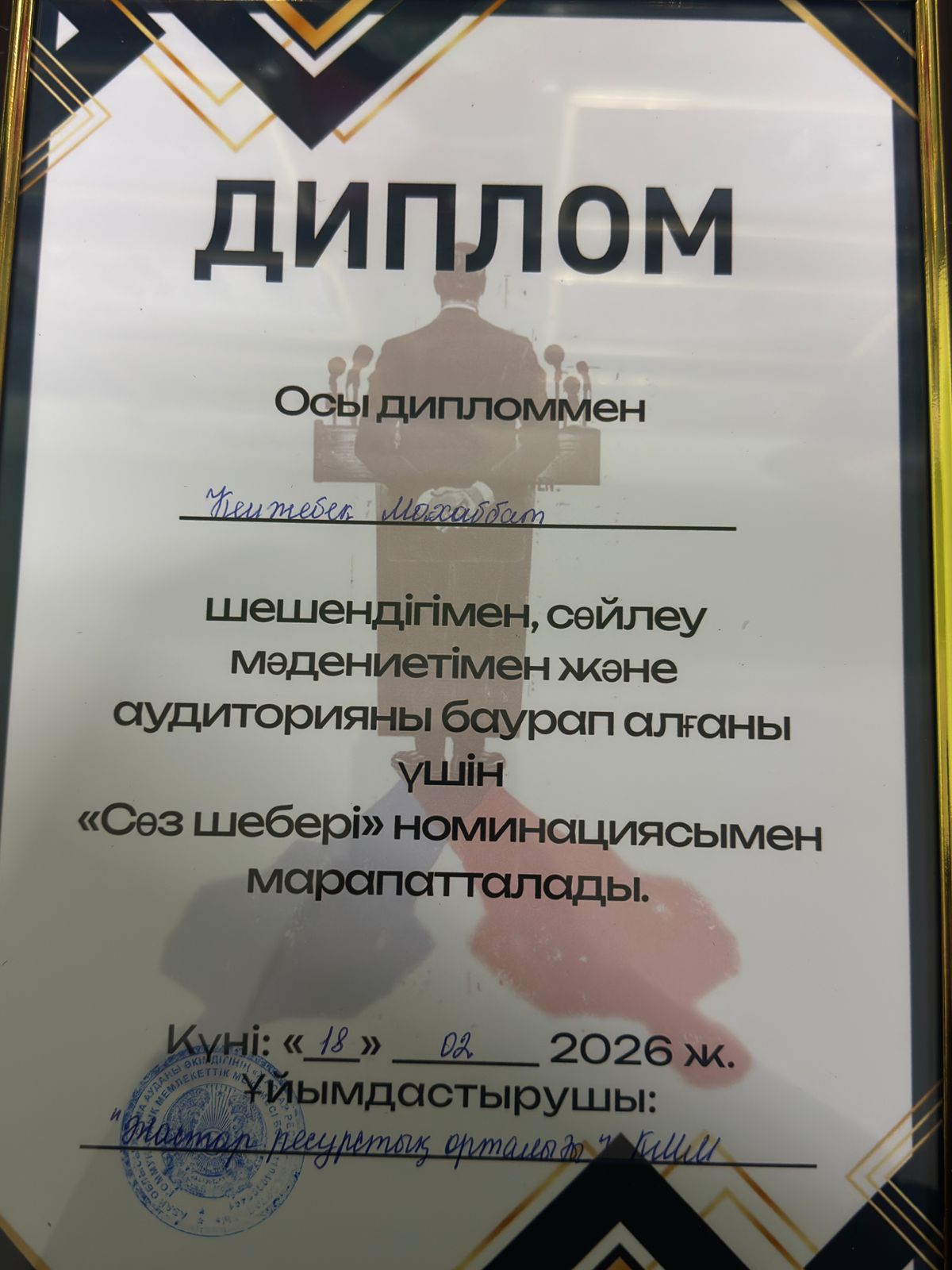 🎤 Сонымен қатар, команда мүшесі КЕНЖЕБЕК МАХАББАТ өзінің ерекше сөйлеу мәдениетімен, от ауызды шешендігімен және аудиторияны баурап алу шеберлігімен танылып, «СӨЗ ШЕБЕРІ» номинациясымен марапатталды.