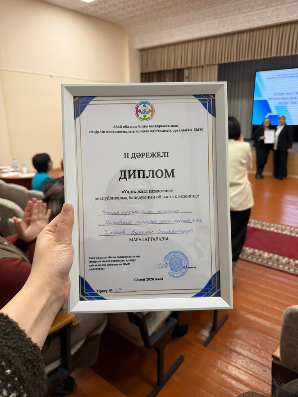 ✅ 2026 жылғы 30 қаңтар күні талантты әрі шығармашыл педагог-психологтарды анықтау және қолдау мақсатында өткен «ҮЗДІК ЖЫЛ ПСИХОЛОГІ» республикалық байқауының ОБЛЫСТЫҚ кезеңінде мектебіміздің педагог-психологы ҰЛЫБАЕВА АҚМАРАЛ ОТАНҒАЛИҚЫЗЫ жүлделі ІІ ОРЫНҒА ие болып, РЕСПУБЛИКАЛЫҚ кезеңге жолдама алды.