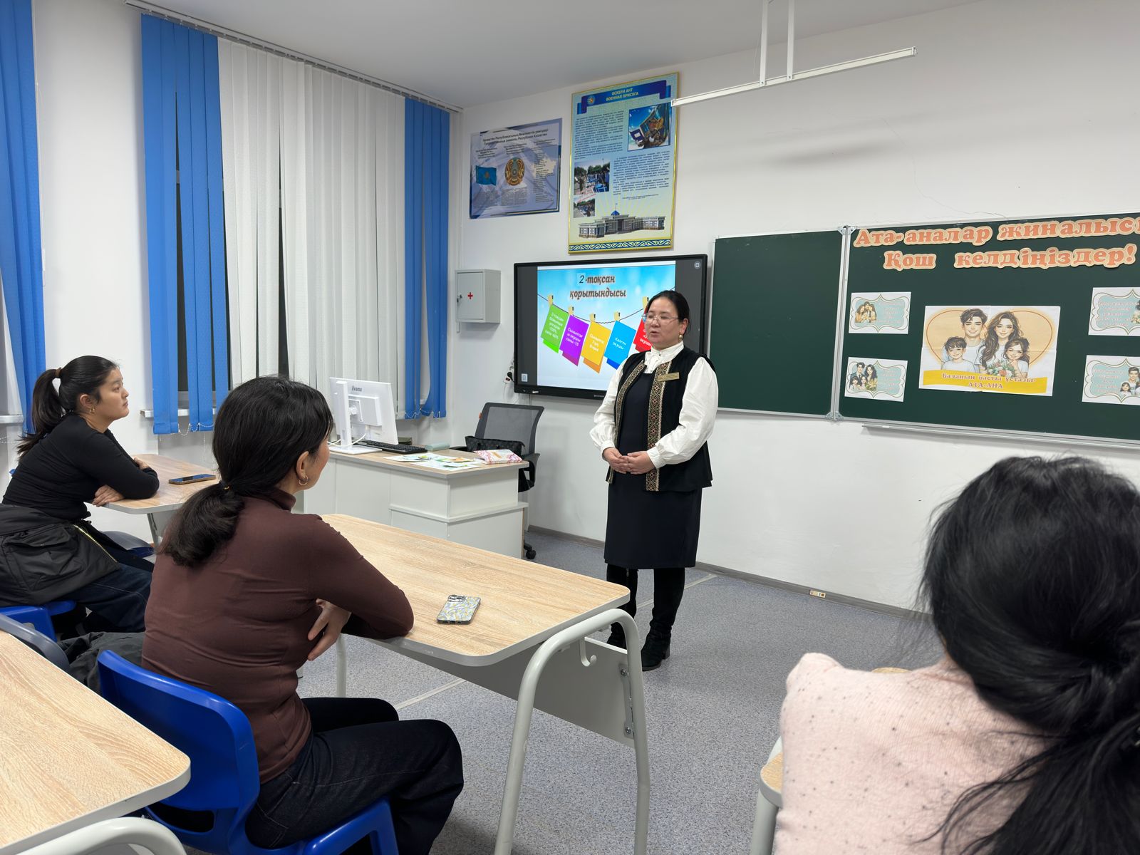 🔹 Жиналыс барысында оқу жетістіктері мен тәртіп, сабаққа қатысу, қысқы демалыс кезіндегі қауіпсіздік шаралары талқыланды.